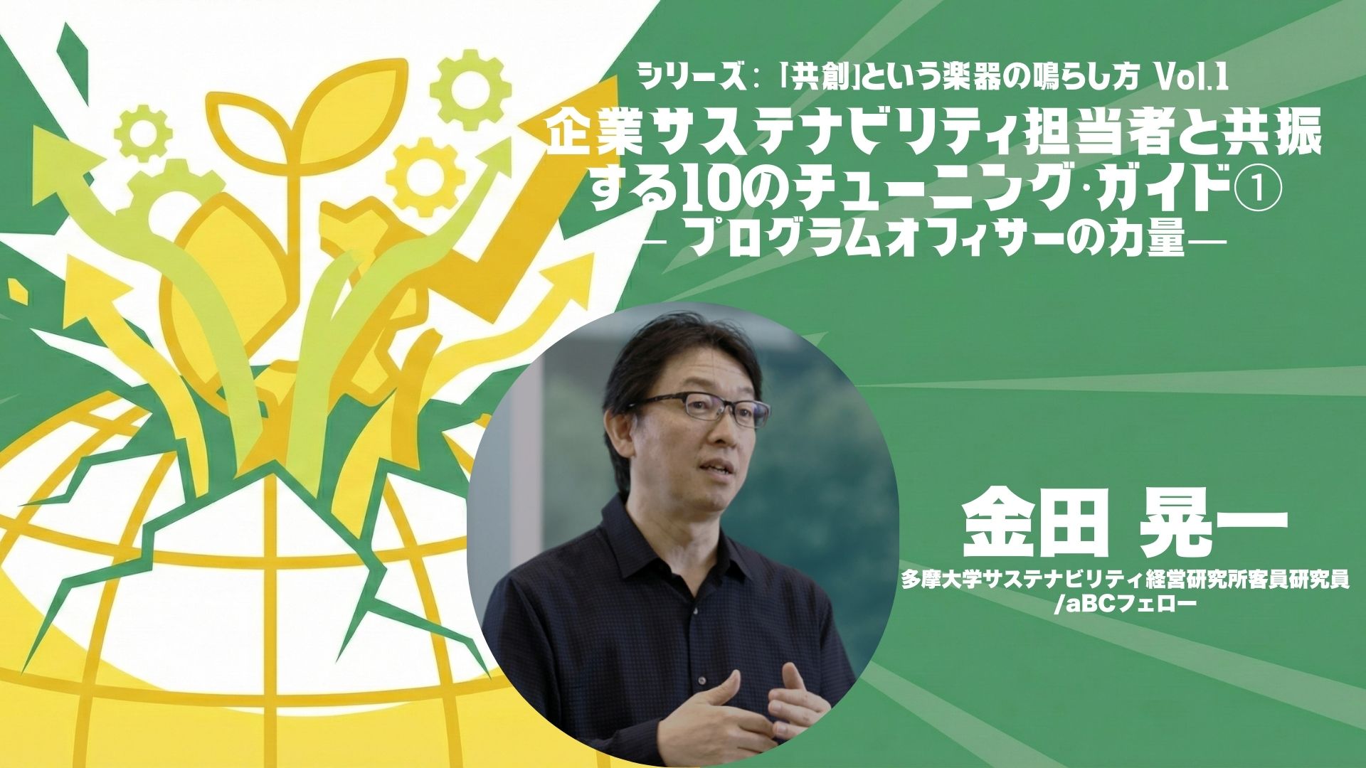 本連載のトップバッターとして新aBCフェローの金田晃一さんを迎え、現職のNTTデータグループのほか、ソニーや武田薬品工業など5社・26年にわたる実践知から、企業担当者とNGOが「共振」するための10の作法(チューニング・ガイド)を紐解きます。